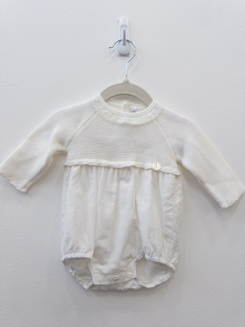 enterizo blanco de punto y tela con puntitos blancos