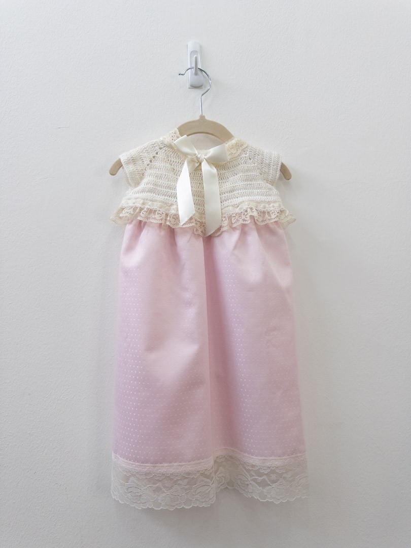 vestido rosado con bordado beige