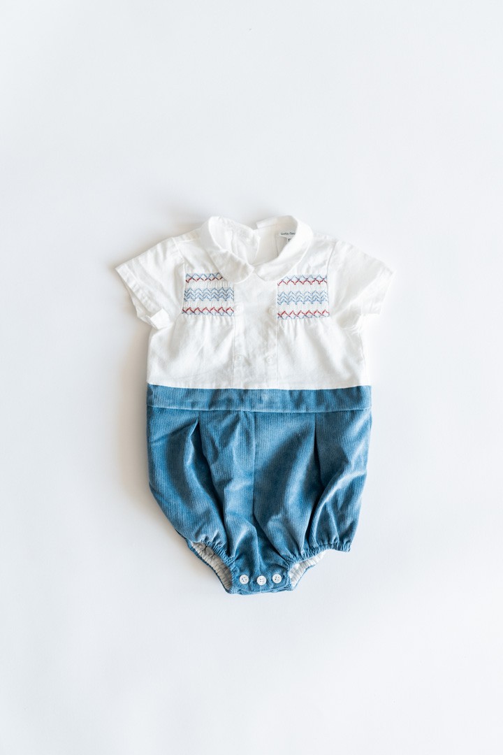 monito abajo celeste gamuza y arriba blanco con bordado azul y rojo