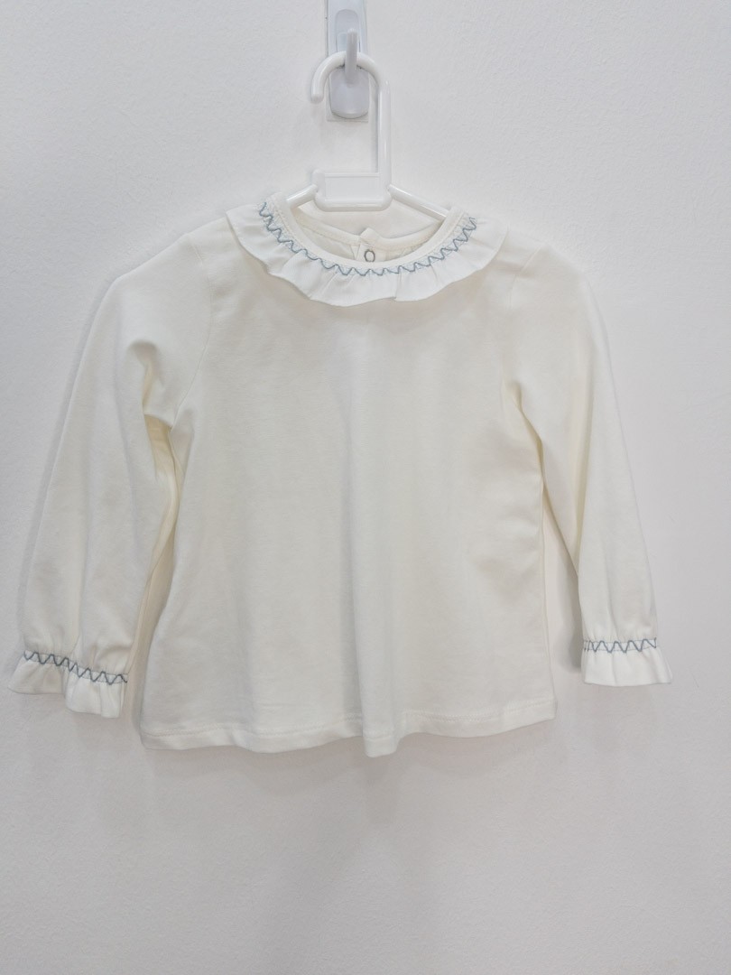 camisa blanca con cuello hilos celestes
