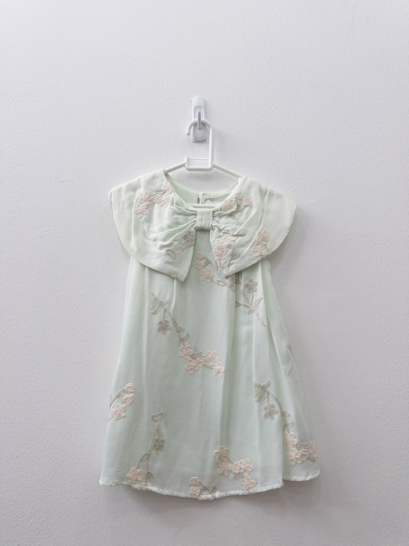 vestido verde agua con flores beige