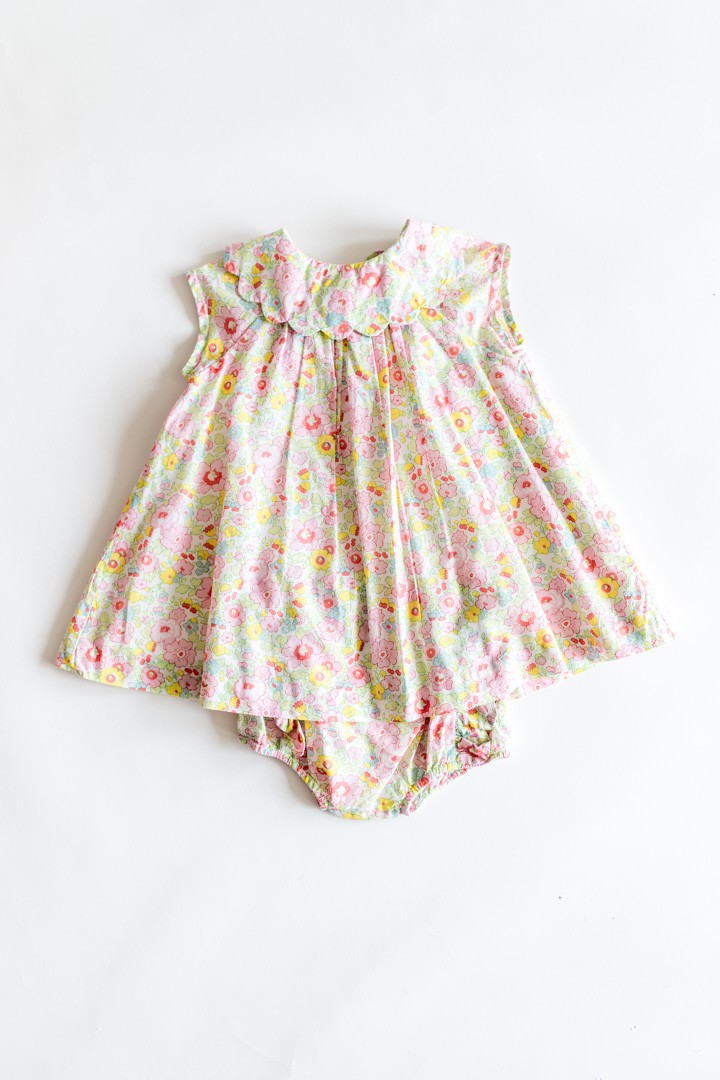 set vestido flores amarillas y rosadas