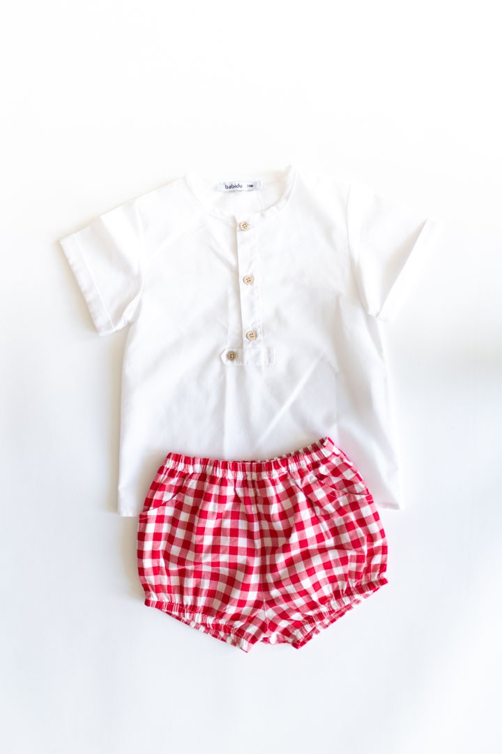 set camisa blanca y short rayas rojas y blancas