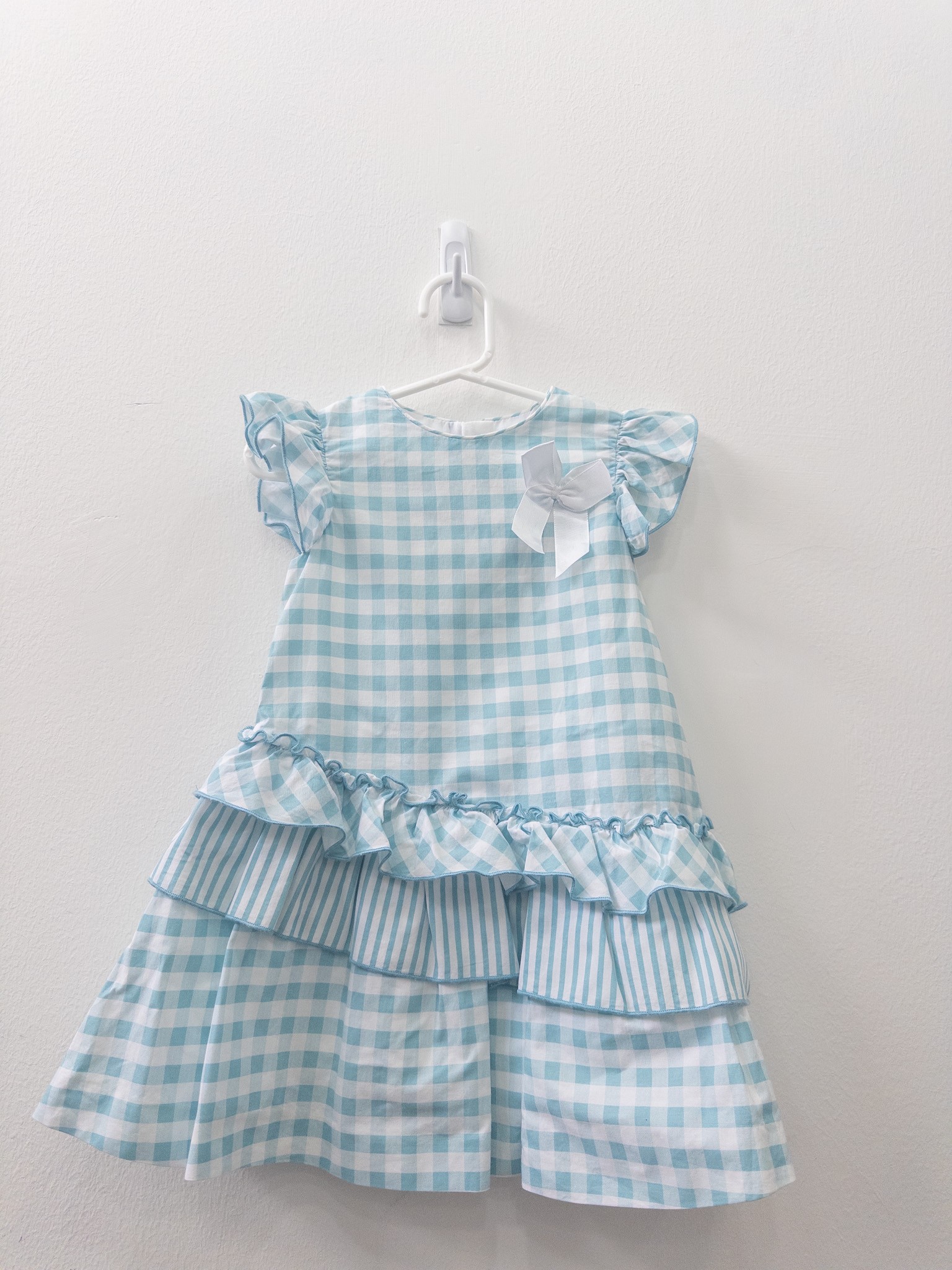 vestido cuadros turquesas y blancos