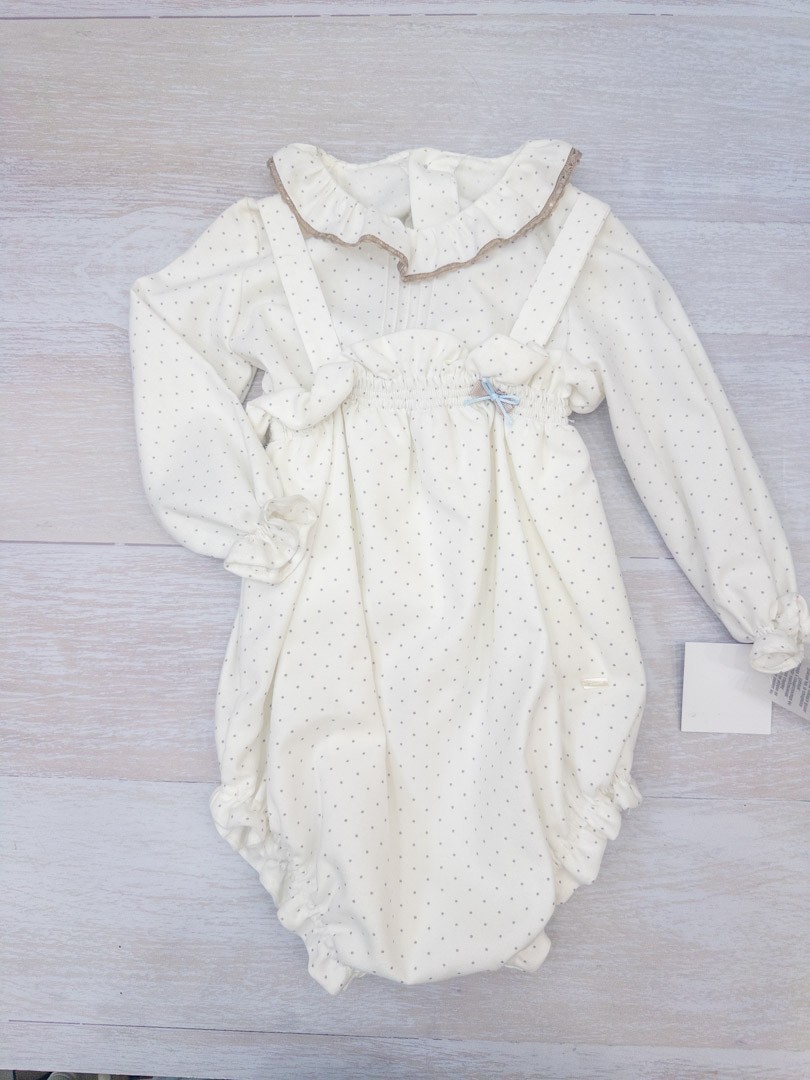 set manga larga con enterizo blanco con puntitos grises