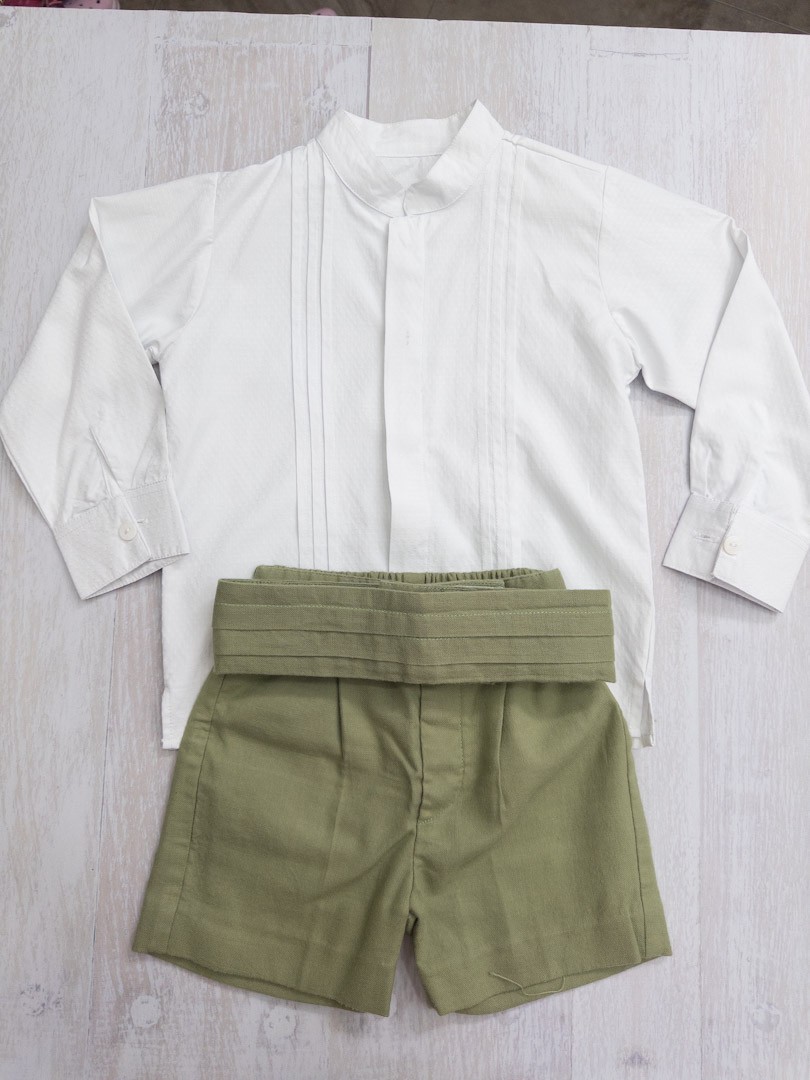 set short verde, camisa blanca