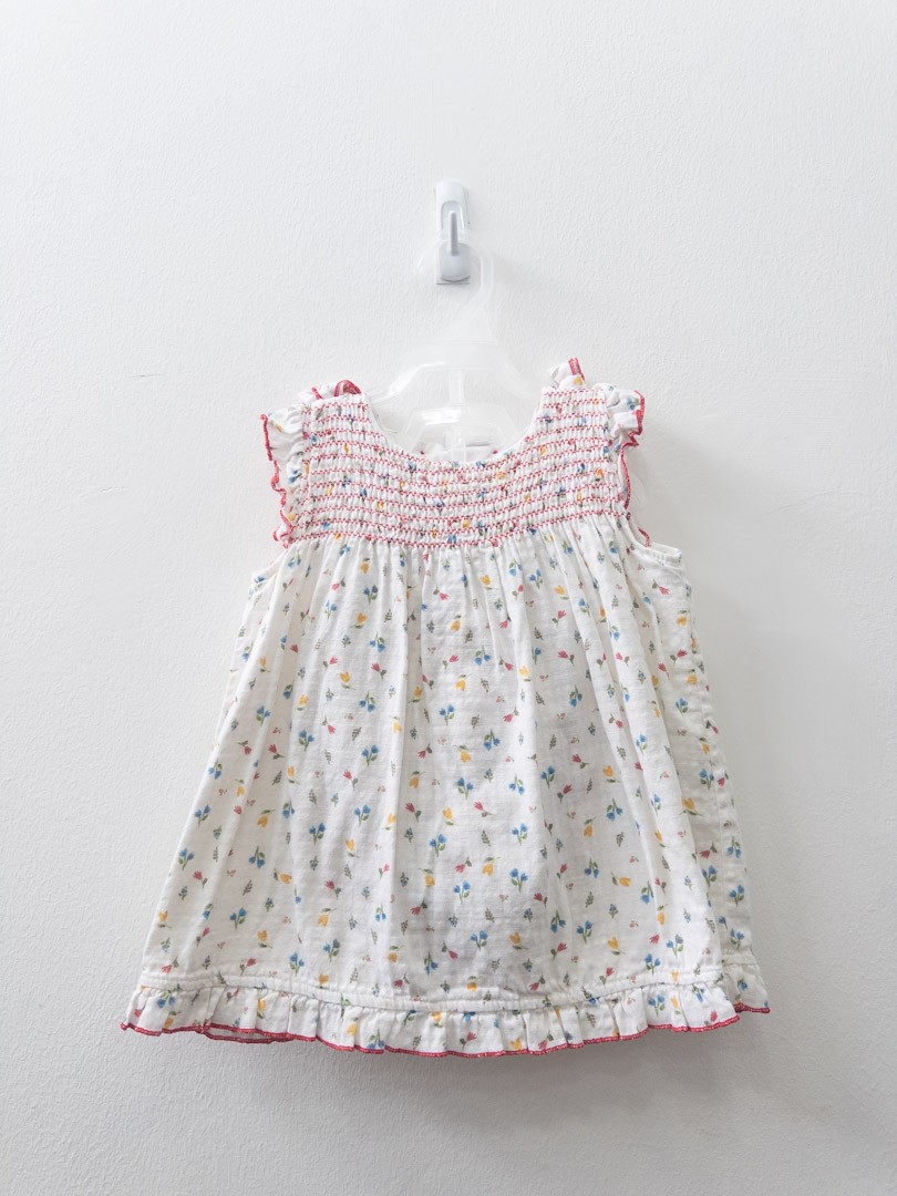 vestido blanco con flores amarillas rojas y azules