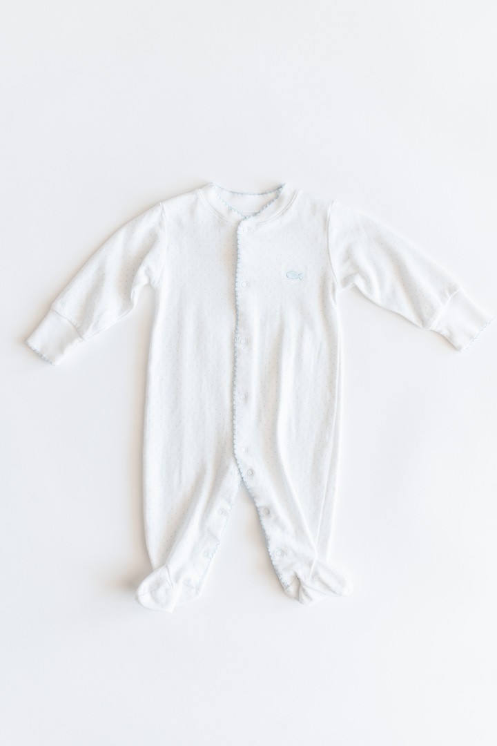 pijama blanca puntitos azules