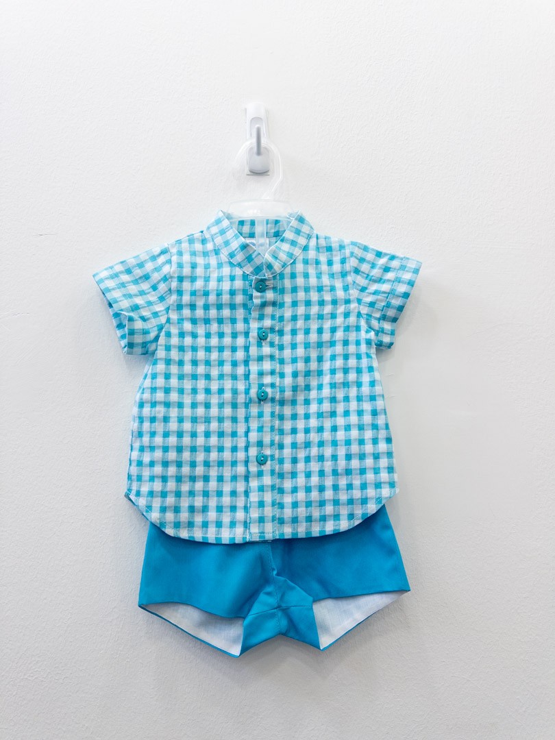 set short turquesa y camisa cuadros turquesas
