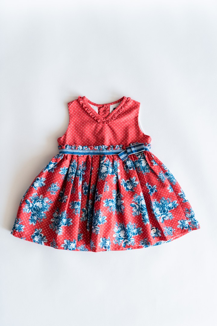 vestido rojo con flores azules