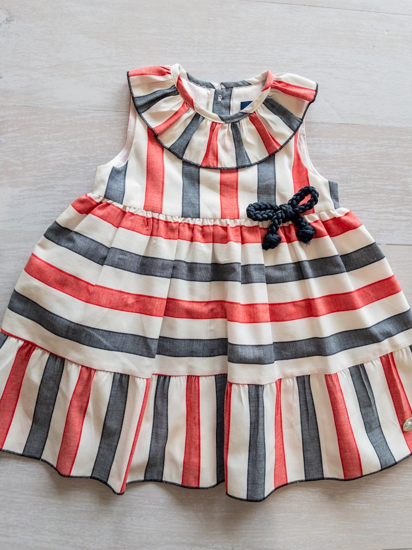 vestido rayas rojas y azules con lazo de soga