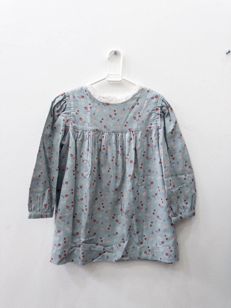 vestido manga larga turquesa con plantas bolitas concho de vino