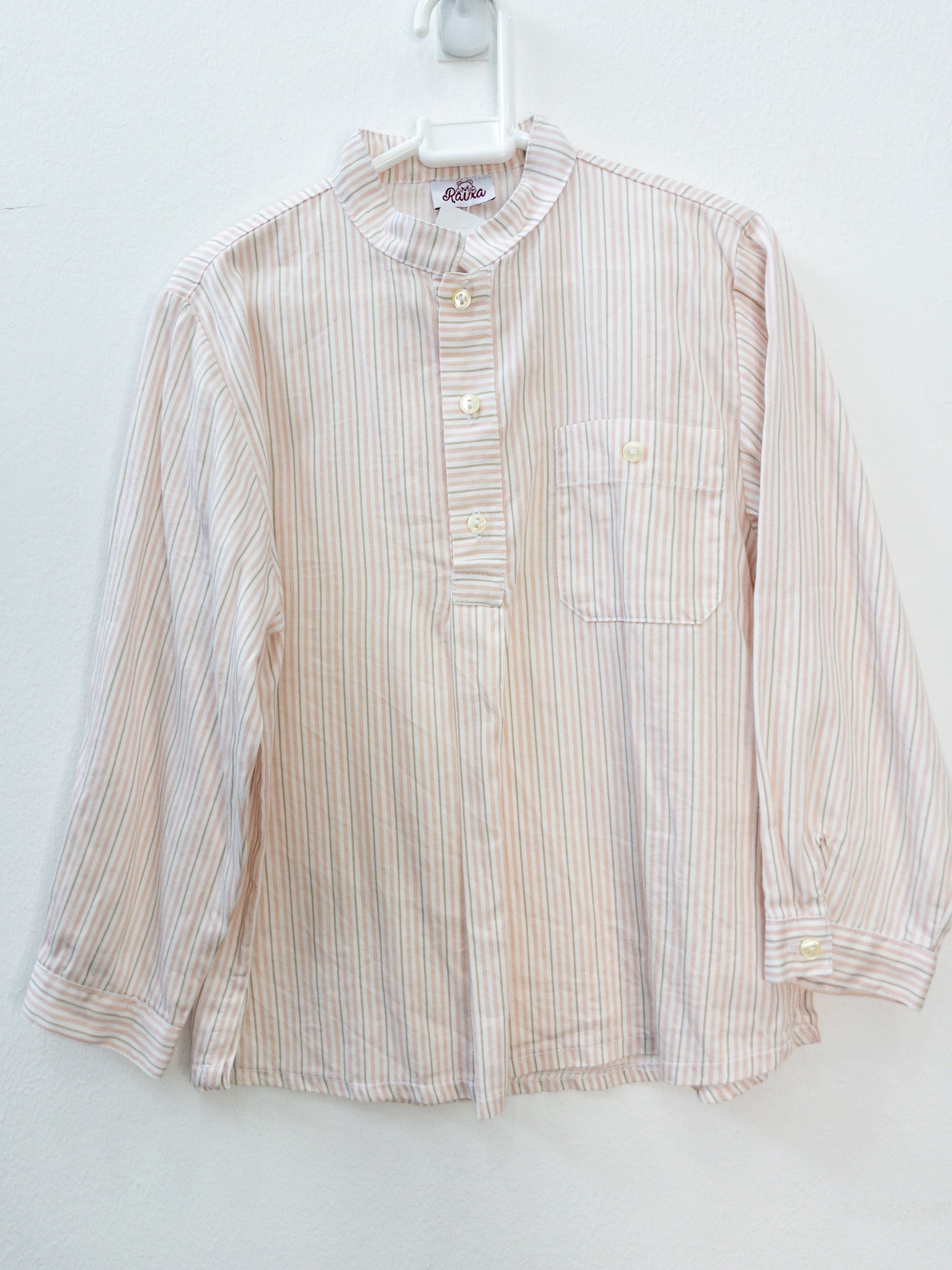 camisa rayas salmon y cafes