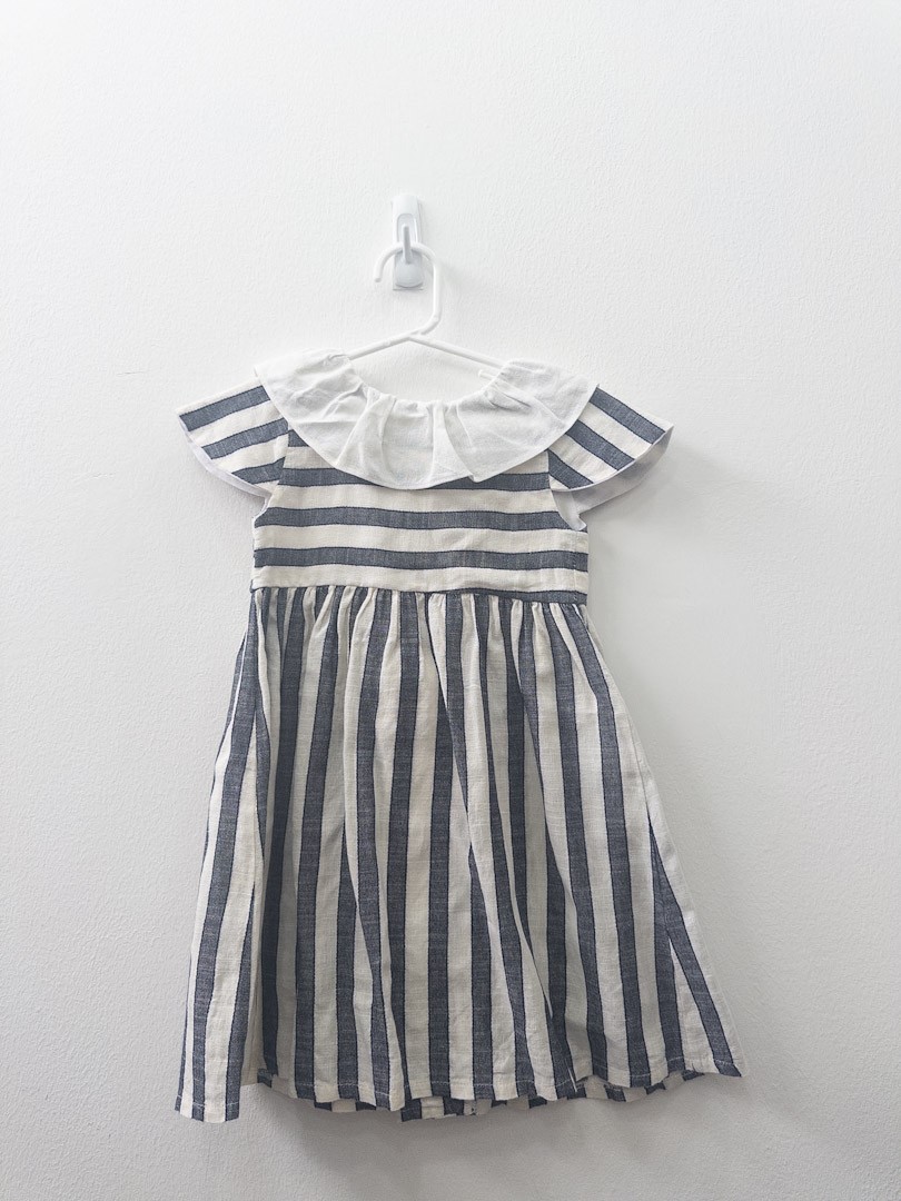 vestido rayas gris azul oscuro y blancos