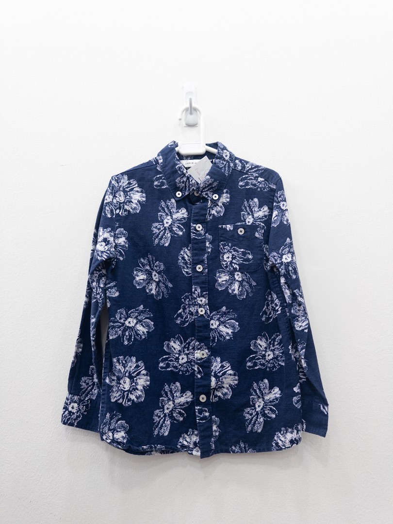 camisa azul con flores blancas