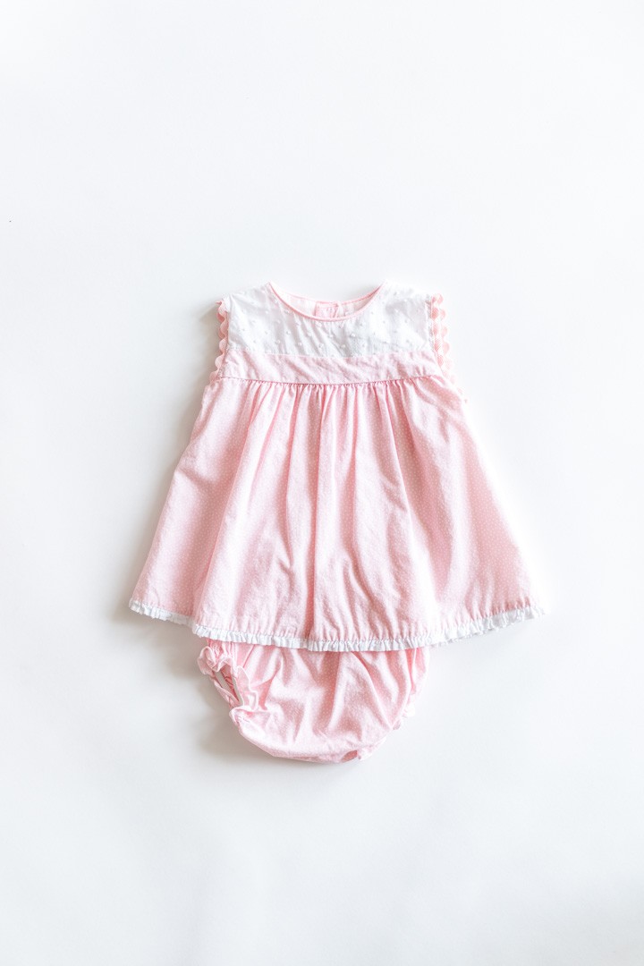 VESTIDO ROSADO PUNTITOS BLANCOS