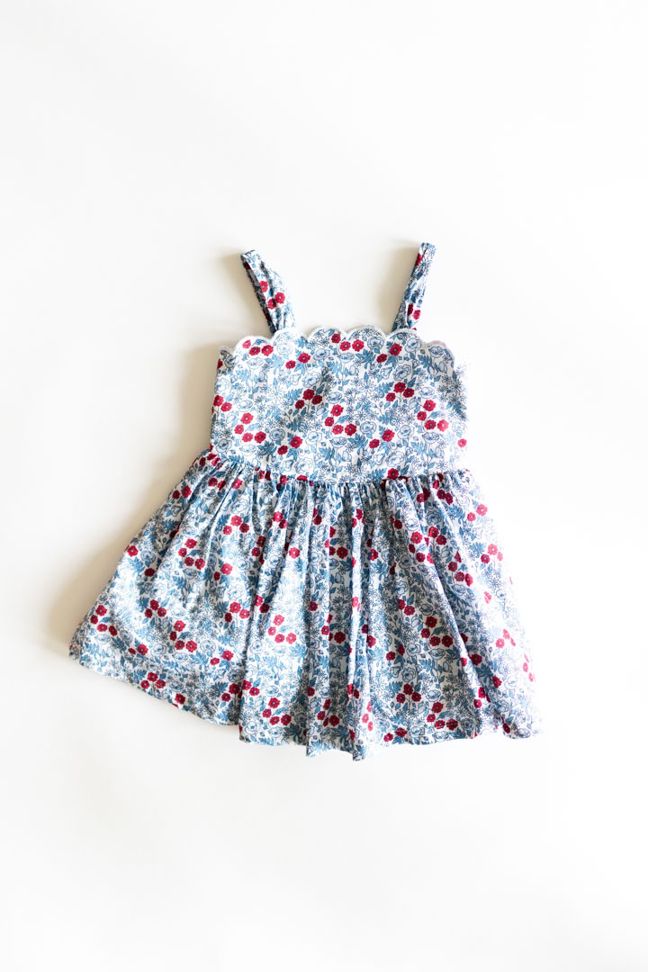 vestido blanco con flores azules y rojas