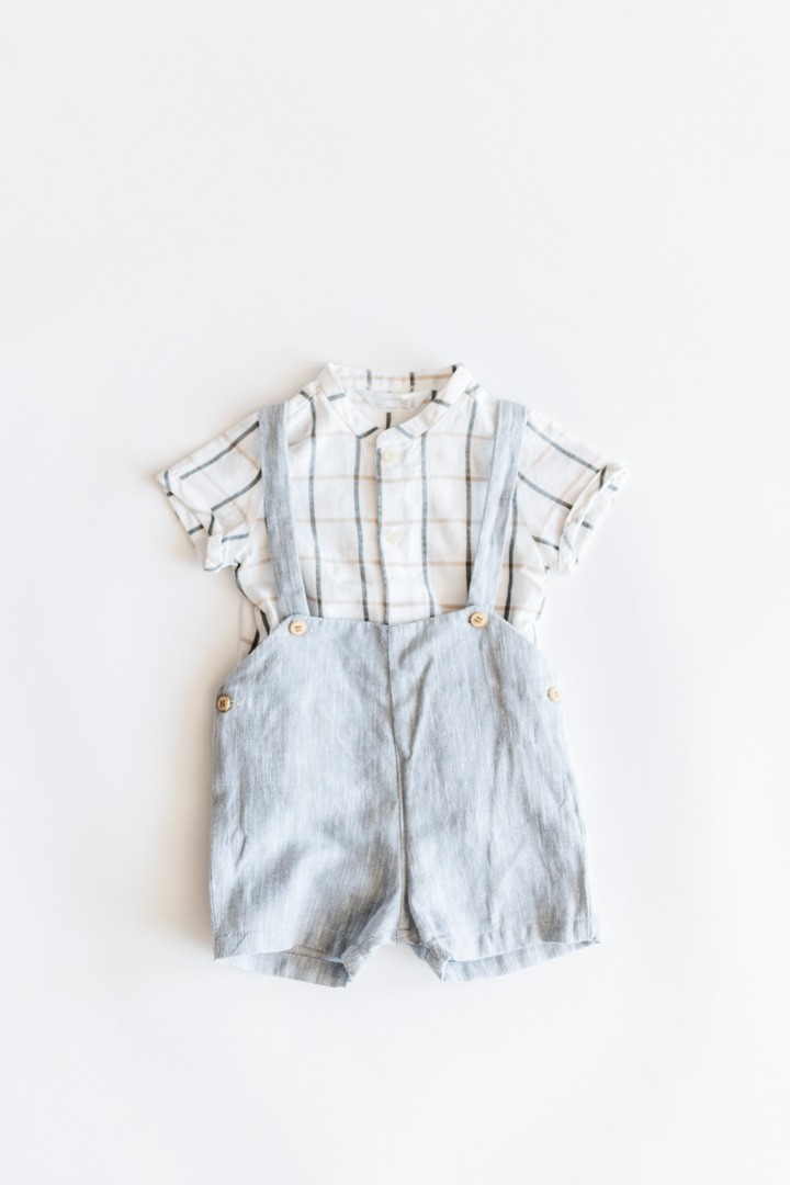 set camisa rayas grises y beige con short gris claro