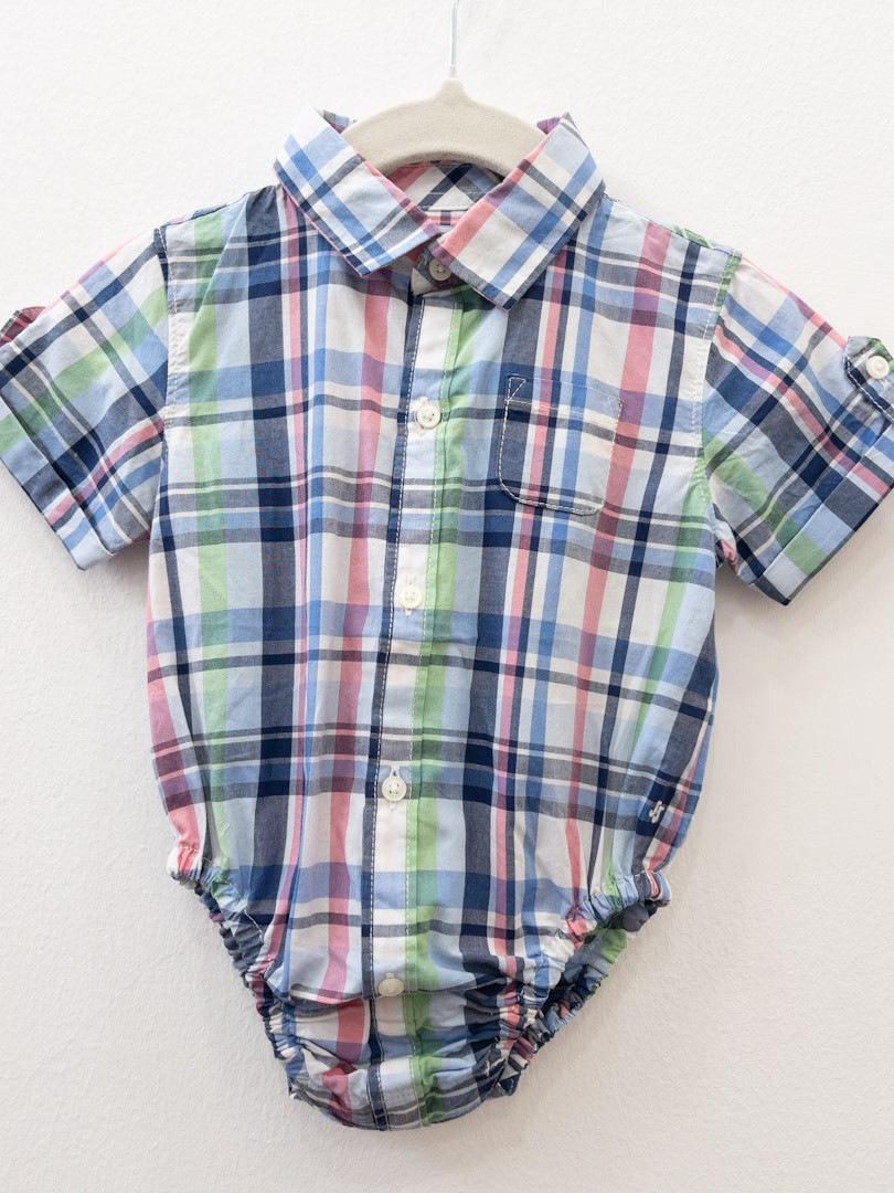 enterizo body camisa manga corta cuadros rosado, verde, azul