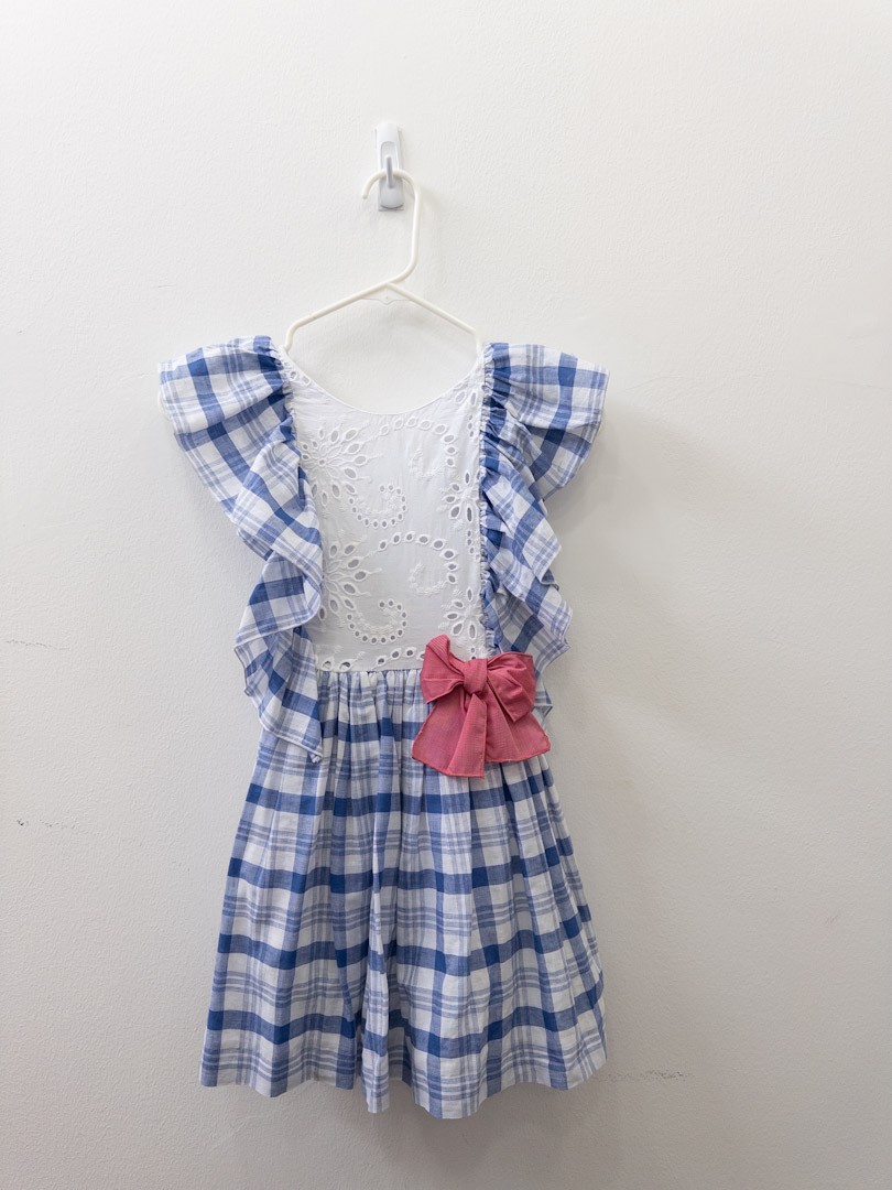 vestido cuadros azules con blanco y lazo rosado