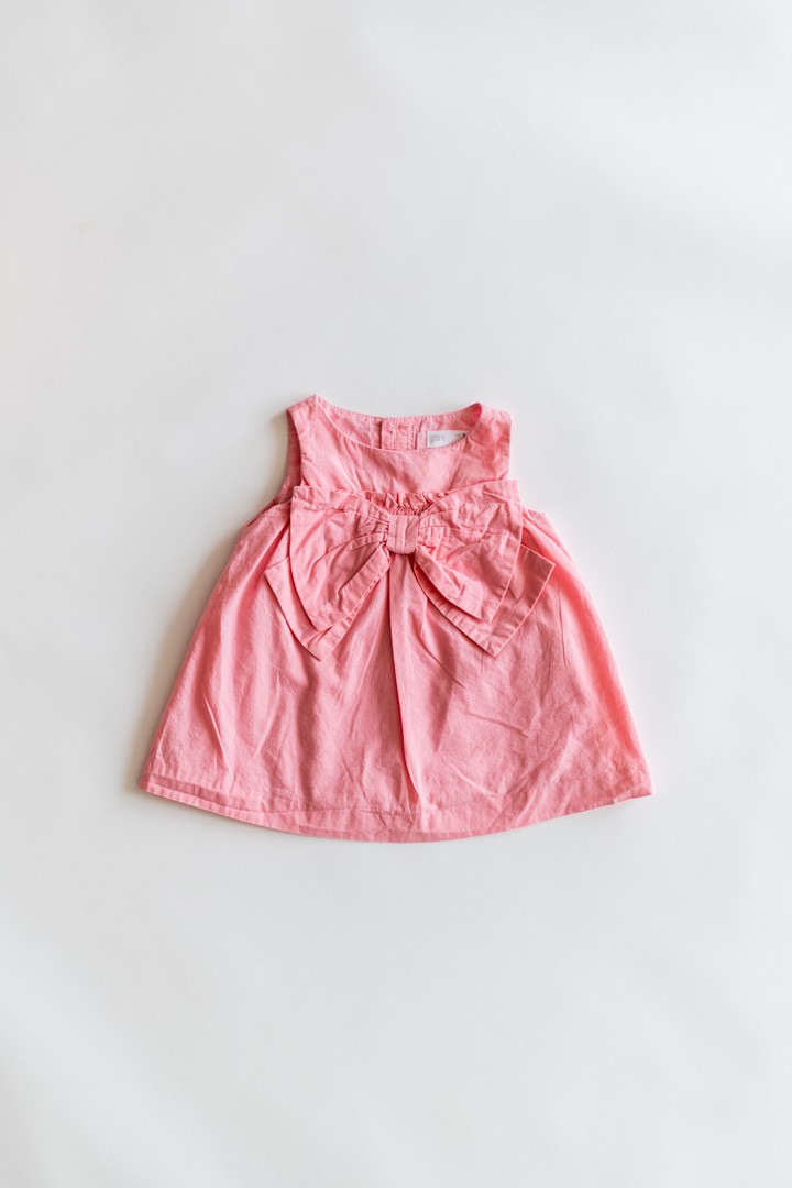 vestido rosa fuerte con lazon en pecho